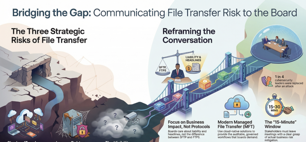 If CISOs are struggling to communicate cyber risk to board members in plain business terms, file transfer is one of the most concrete and underexplained examples of where that gap shows up. Here’s how we’d frame that conversation.